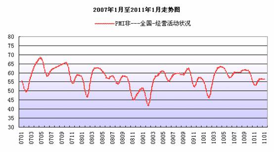 由于建筑原材料价格淡季回调,本月中间投入价格指数趋稳回落,但仍保持在64.6%的高位,通胀压力依然较大。政策分析:房地产市场的经营活动和市场需求双双出现回落。其商务活动指数环比回落5.6个百分点;新订单指数环比回落3.0个百分点,连续四个月出现回落。近期国家针对房地产市场从问责、限价、限购和税收等各方面出台了相关的调控政策,并且对上海、重庆开始试征房地产税。各项房地产政策叠加在一起,对后期走势会产生什么影响尚不明朗。今后几个月要密切关注房地产行业指数变化。