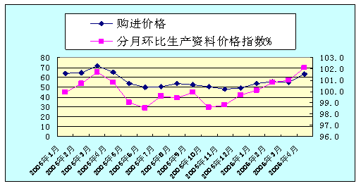 图4.9 2005年1月-2006年3月购进价格指数与生产资料价格指数