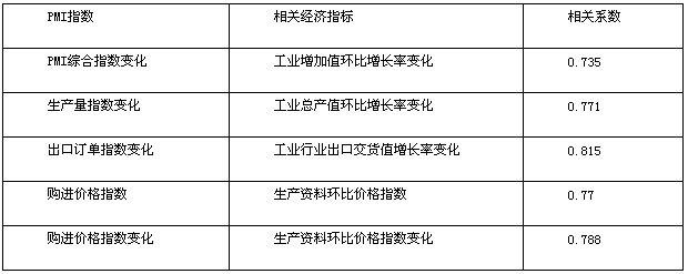 表4.3 我国PMI指数与相关工业经济指标的相关性(2005-2006年3月)