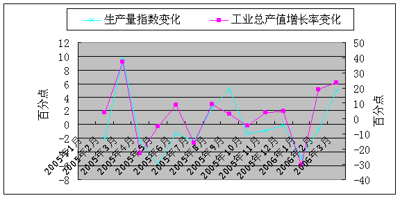 图4.6 生产量指数变化与工业总产值环比增长率变化比较