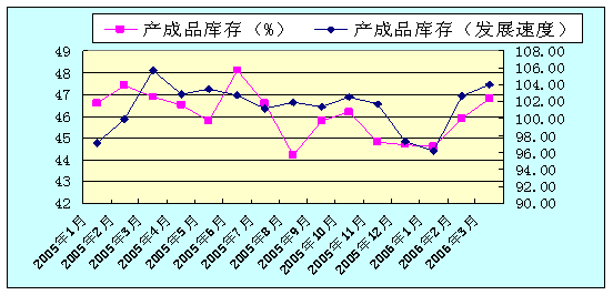 图4.7 2005年1月-2006年3月产成品库存指数与工业产成品库存比较