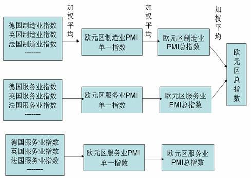NTC集团在各国完成PMI调查基础上,建立了欧元区PMI体系和欧元区PMI总指数。欧元区PMI总指数是在每个月定期调查超过5000个公司采购经理的基础上完成的,各项指数计算方法与美国类似。该指数由欧元区制造业与服务业数据加权形成,权重是将欧元区作为一个整体,基于各国总产值对于欧元区经济发展的相对重要性来进行计算。整个欧元区PMI体系包括6个指标:欧元区综合生产指数、新订单指数、雇员指数、采购品价格指数、积压订单指数、产出品价格指数。