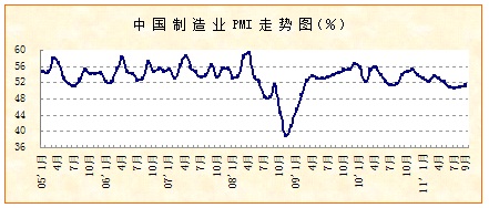 从PMI指数走势来看, 三季度经济发展整体势头良好。PMI指数上半年形成的连续回落势头基本扭转,走势呈现稳中有升,显示出经济增速在回落过程中逐渐回归稳定。购进价格指数高位回落,由上半年平均65.2%回落到56.7%,说明物价上涨势头基本受到控制。结构调整取得初步成效,传统的原材料与能源工业增速明显减缓;生活消费品工业发展势头稳定;机电设备制造业、信息技术产业保持平稳较快发展,对工业发展的引领作用较为突出。
