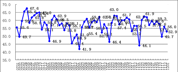 中国非制造业PMI指数体系,由商务活动、新订单、新出口订单、积压订单、存货、中间投入价格、收费价格、从业人员、供应商配送时间、业务活动预期10项扩散指数构成。由于没有合成指数,国际上通常用商务活动指数来反映非制造业经济发展的总体情况,一般来说该指数达到50%以上,反映非制造业经济总体上升或增长;低于50%,反映非制造业经济下降或回落。