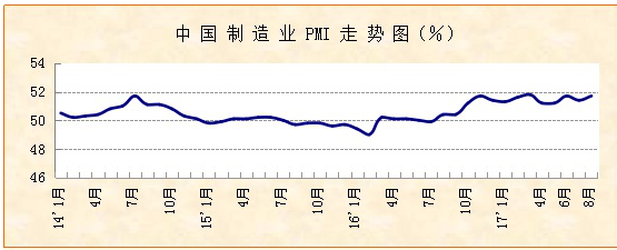 雷竞技电竞竞猜网 、国家统计局服务业调查中心发布的2017年8月份中国制造业采购经理指数(PMI)为51.7%,较上月上升0.3个百分点,回补了7月份季节性影响带来的短期下降。从主要分项指数来看,供需双侧联动回升明显,企业生产经营活动整体向好,大企业保持稳定,中小企业明显回升,年内预期较为乐观,生产扩张意愿较强,原材料采购积极。综合来看,当前经济运行基本回归稳中趋升基本态势,前期季节性因素影响造成的短期波动基本平复,也显示出经济运行抗短期波动的韧性增强,保持平稳健康发展具有较为坚实内在基础。