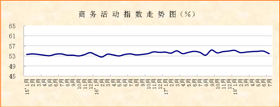 、国家统计局服务业调查中心发布的2018年7月份中国非制造业商务活动指数环比回落1个百分点,但仍运行在54%的较高水平,表明非制造业运行仍较为稳定。建筑业活动以及节日消费相关行业淡季回调是导致本月商务活动指数回落的主要因素。从分项指数变化看,新订单指数和从业人员指数均有回升,销售价格指数连续两个月环比上升,表明在非制造业保持稳定运行的同时,经济发展质量和效益有所改善。