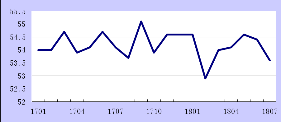 其中,7月份,制造业生产指数为53.0%,比上月回落0.6个百分点;非制造业商务活动指数为54%,比上月回落1个百分点。