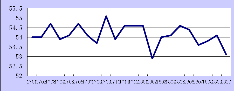 2017年1月-2018年10月综合PMI产出指数走势图